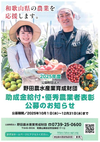 2025年度 新規就農助成金給付・優秀農業者表彰の公募を10月1日より開始いたします。